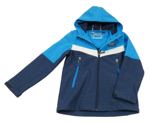 Světlemodro-bielo-tmavomodrá softshellová bunda s kapucňou C&A