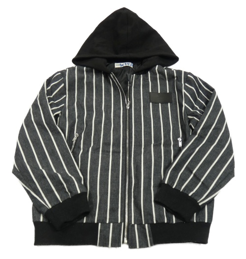 Čierna melírovano/pruhovaná jarná bunda s nášivkou a kapucňou