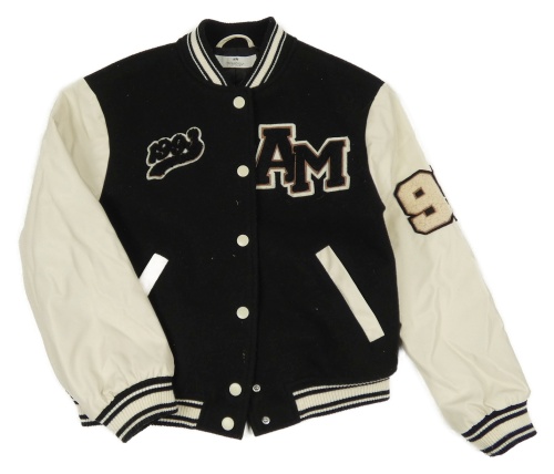 Čierna flaušová jarná baseballová bunda s koženkovymi rukávy H&M