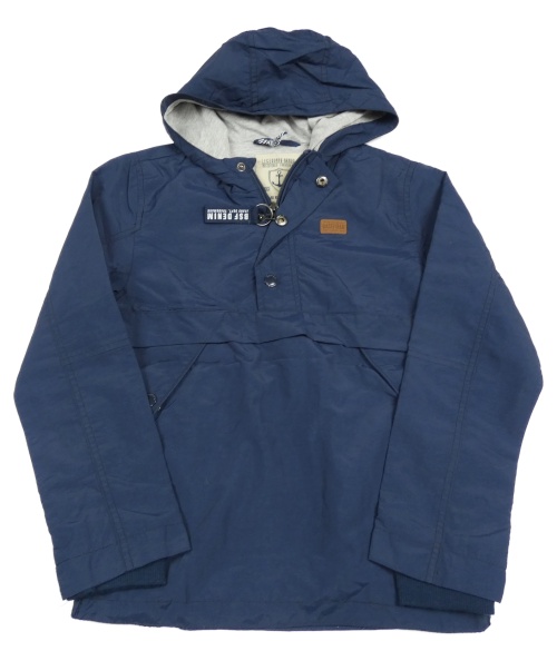 Tmavomodrá šušťáková jarná bunda s nášivkou a kapucňou