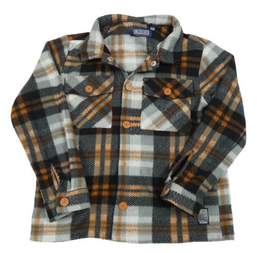 Sivo-čierno-oranžová kockovaná fleecová košeľová bunda
