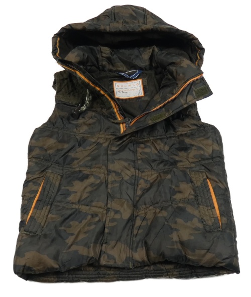 Tmavohnědo-čierna army prešívaná šusťákovo/manšestrová zateplená vesta s kapucňou NUTMEG