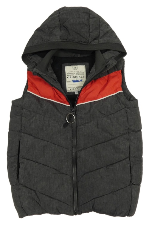 Tmavošedo-červená šušťáková zateplená vesta s kapucňou M&S