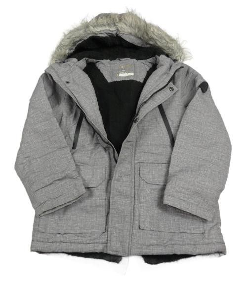 Sivá melírovaná šušťáková zimná bunda s kapucňou s kožešinou Primark