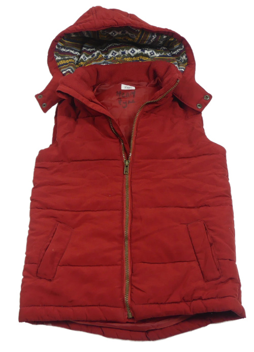 Rubínová šušťáková zateplená vesta s kapucňou F&F