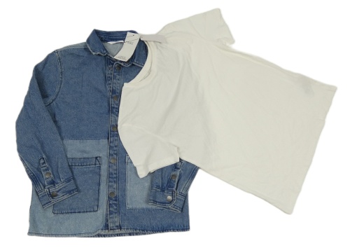 Nové - 2set - Modrá rifľová košeľová bunda + biele tričko M&S