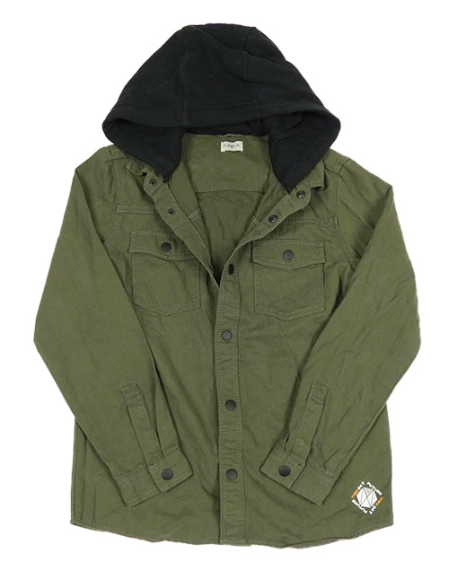Tmavokhaki rifľová košeľová bunda s potlačou a kapucňou F&F