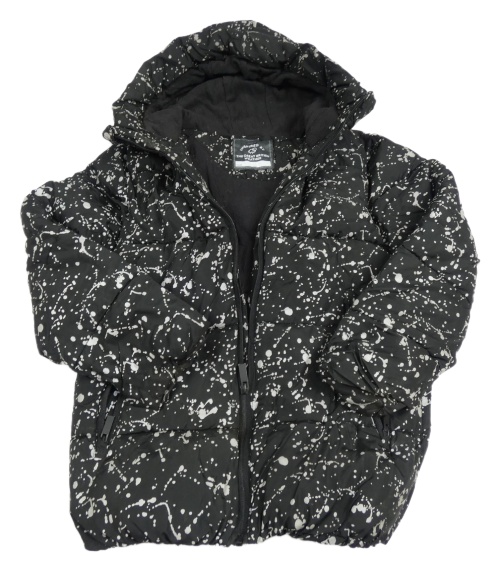 Čeno-sivá skvrnitá prešívaná šušťáková zimná bunda s kapucňou George