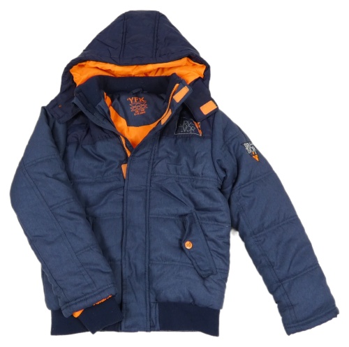 • Tmavomodrý melírovaný šusťákový zimní bomber so znakom s nápisom a odopínací Y.F.K.