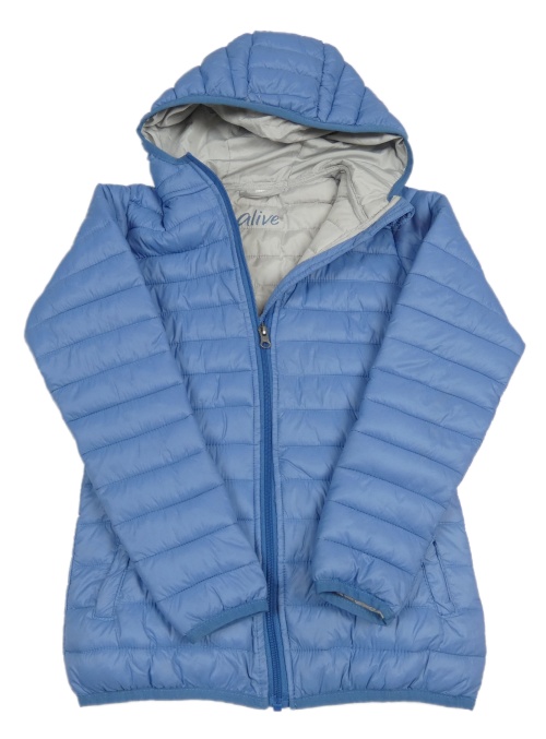 Svetlomodrá šušťáková prešívaná ľahká zateplená bunda s kapucňou Alive