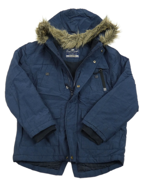 Tmavomodrá melírovaná šušťáková zimná bunda s kapucňou s kožešinou George