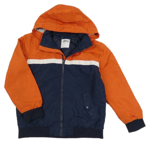Tmavomodro-oranžová šušťáková zateplená bunda s kapucňou Gémo