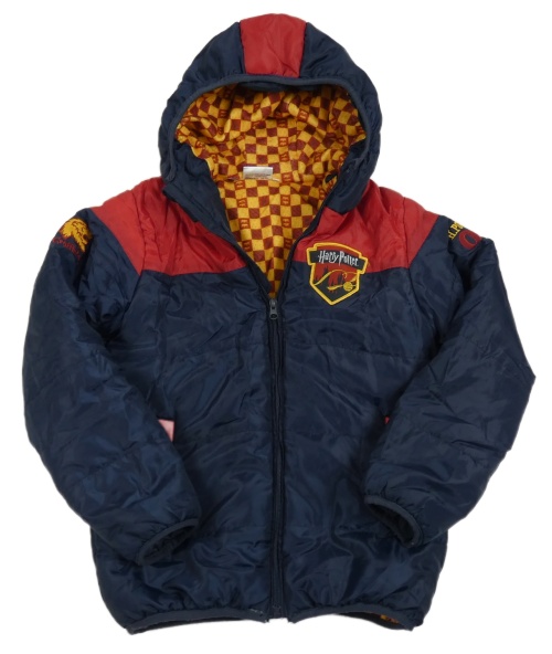 Tmavomodro-červená šušťáková zimná bunda s nášivkou a kapucí - Harry Potter