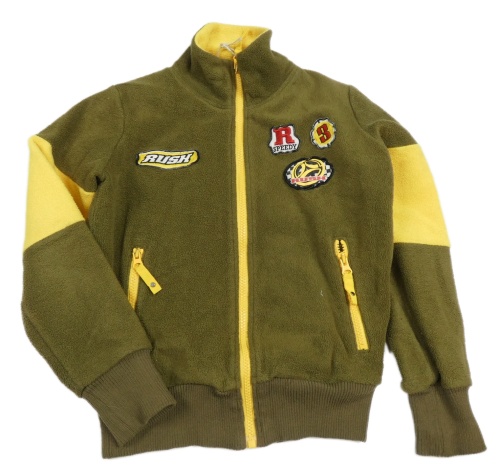 Khaki-žlutý fleecový bomber s nášivkami RUSH