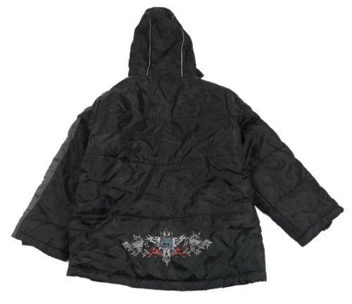 Čierno-tmavosivá prešívaná šušťáková zimná bunda s lebkou a kapucňou X-MAIL