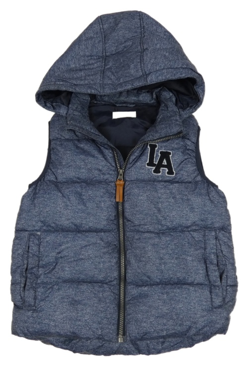 Tmavomodrá melírovaná šušťáková zateplená vesta s písmeny a kapucňou H&M