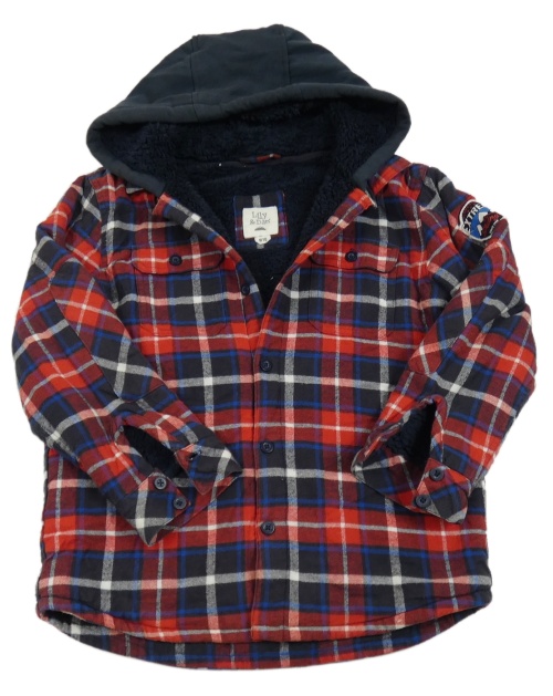 • Červeno-tmavomodro-biela kockovaná flanelová zateplená košeľová bunda s kapucňou Lily & Dan