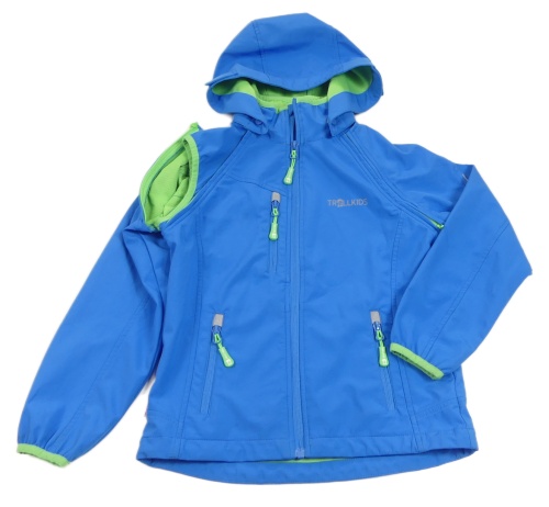 • Modrá šušťáková funkčná jesenná bunda s odepínacími rukávy a kapucňou Trollkids,
