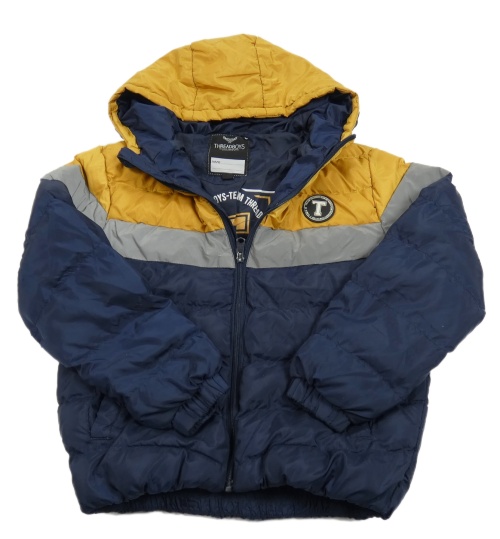 Hořčicovo-stříbrno-sivá šušťáková zimná bunda s nášivkou a kapucňou