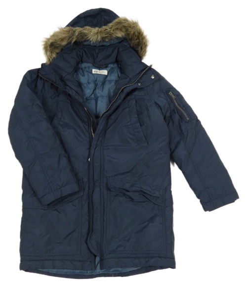 Tmavomodrá šušťáková zimná bunda s kapucňou s kožešinou H&M