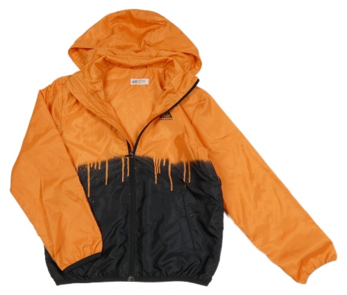 Oranžovo-čierna šušťáková ľahká bunda s potlačou a kapucňou H&M