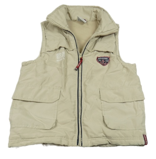Béžová šušťáková zateplená vesta s nášivkou