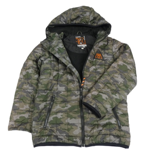 Kaki-sivá army šušťáková prešívaná zateplená bunda s kapucňou F&F