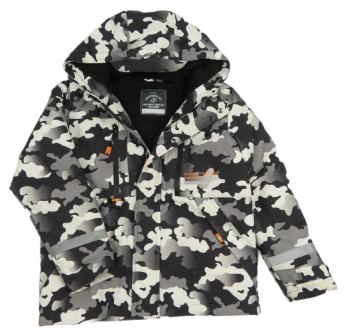 Čierno-sivo-biela army šušťáková zimná bunda s kapucňou George