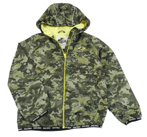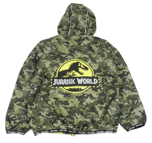 Khaki army šušťáková jarná bunda s dinem a kapucí - Jurský svět