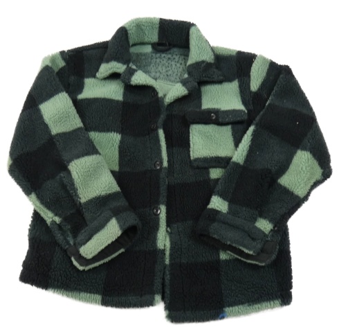 Čierno-zelená kockovaná huňatá bunda Kids