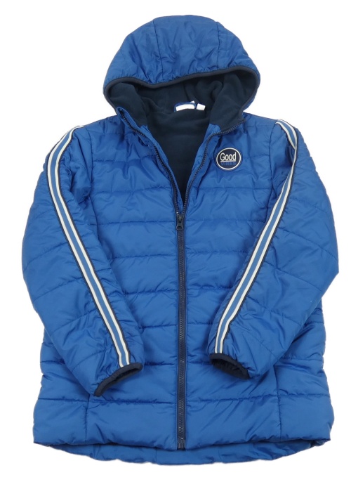 Modrá šušťáková zateplená bunda s nášivkou a kapucňou kids