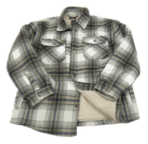 Bielo-sivo-tmavomodrá kockovaná vlnená zateplená košeľová bunda Next