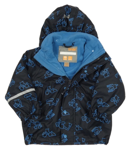 Tmavomodrá nepromokavá podšitá bunda s traktormi a kapucňou Ceretec