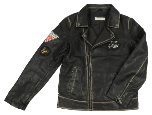 Čierny koženkový krivák s nášivkami Mango