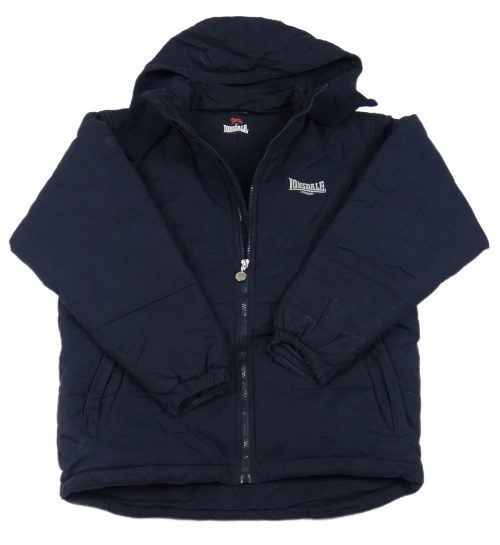 • Tmavomodrá prešívaná šušťáková zimná bunda s logom a odopínacíá kapucňou Lonsdale