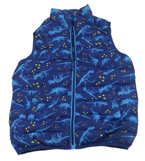 Tmavomodrá šušťáková prešívaná zateplená vesta s dinosaurami Moun