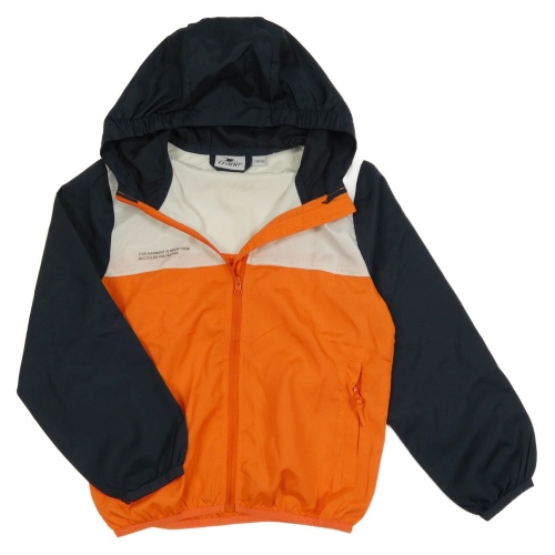 Tmavomodro-bielo-oranžová šušťáková funkčná bunda s nápisom a kapucňou Crane