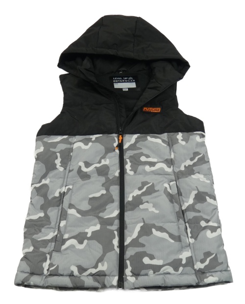 Sivo-čierna šušťáková zateplená vesta s kapucňou F&F