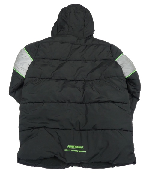 Čierno-strieborná šušťáková zimná bunda s nápisom a kapucňou TU