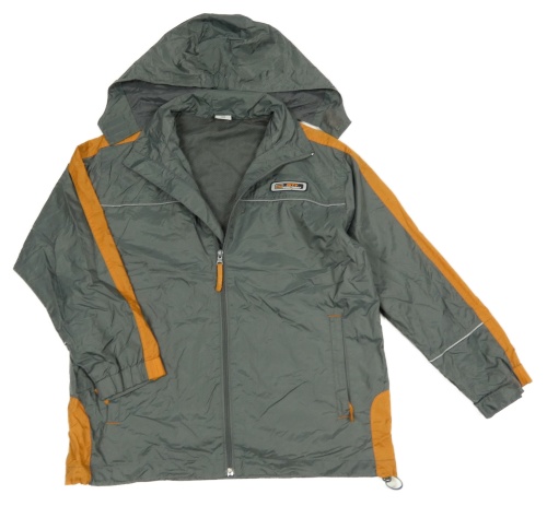 Sivo-oranžová šušťáková jarná bunda s ukrývací kapucňou Alive