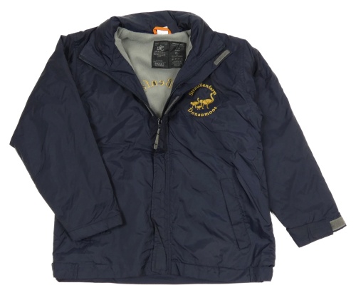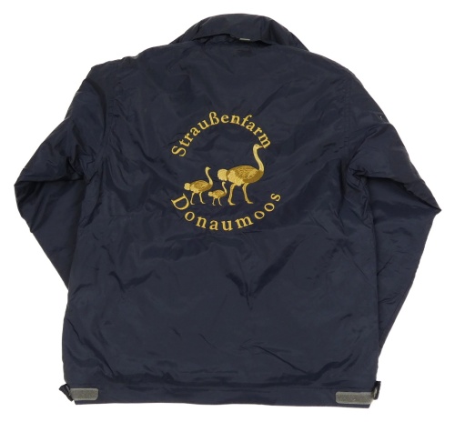 Tmavomodrá šušťáková zateplená bunda s pštrosy a ukrývací kapucňou