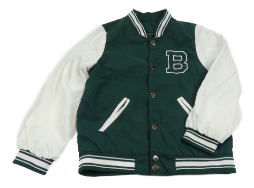 Tmavozeleno-biela šušťáková jarná baseballová bunda s písmenem