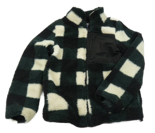 Tmavosmaragdovo-smetanovo-čierna kockovaná huňatá podšitá bunda HIP&HOPPS