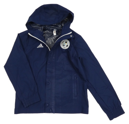Tmavomodrá šušťáková funkčná futbalová bunda s kapucňou Adidas
