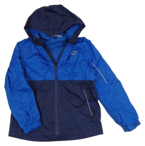 Tmavomodro-modrá šušťáková jarná funkčná bunda s potlačou a kapucňou Crane