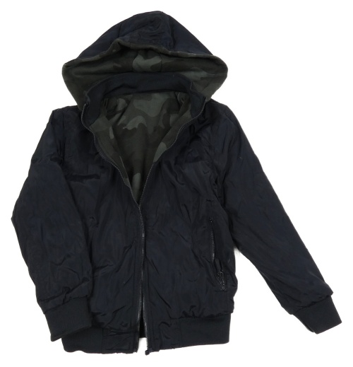 Tmavomodrá šušťáková obojstranná bunda s kapucňou
