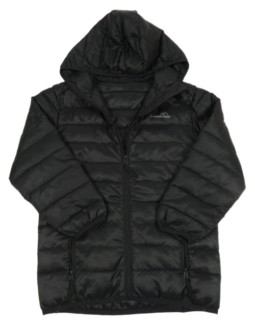 Čierna šušťáková prešívaná lehce zateplená bunda s nápisom a kapucňou