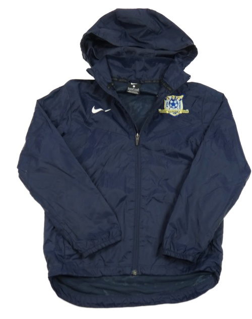 Tmavomodrá šušťáková jarná bunda s výšivkou a kapucňou Nike