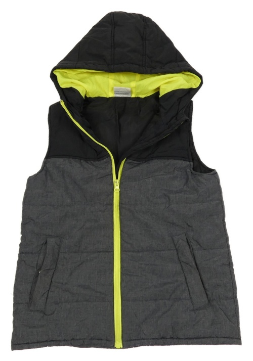 Čierno-tmavosivá šušťáková zateplená vesta s kapucňou Yigga