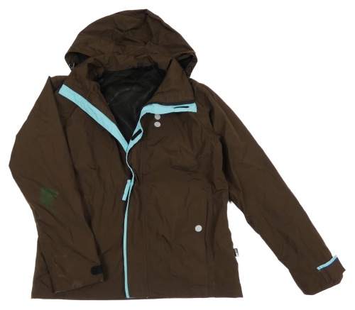 Tmavohnedá šušťáková jarná funkčná bunda s odopínacíá kapucňou rukka